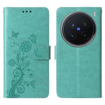 Elegant leatherette case for Vivo X200 Pro 5G with floral and butterfly print. Features an integrated stand, card slots and wallet compartment. Complete protection with practical hand strap for easy carrying.