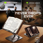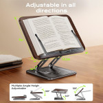 From the natural elegance of wood to the robustness of carbon steel, this stand is the versatile solution for any workspace. Made from MDF and carbon steel, it provides reliable stability for working or writing directly. Seven levels of height adjustment allow users to find the ideal viewing angle, correcting posture and reducing eyestrain. The 360-degree rotation capability offers ultimate flexibility, allowing the viewing angle to be adjusted for laptops, tablets or books.