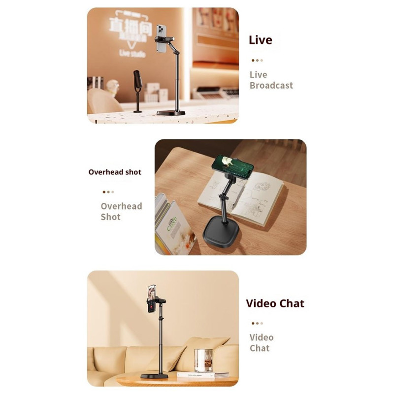 Designed specifically for office use and content creation, this stand offers the stability and versatility required for overhead shooting. Made from high-quality aluminium alloy, it provides a stable and durable base, weighing in at around 550 grams. The metal column is extendable, offering versatile positioning for underwater shoots. livestream or tutorials. Its compact design makes it easy to carry and install anywhere. It's compatible with smartphones up to 6 inches in size, offering optimum viewing angles thanks to its adjustable design.