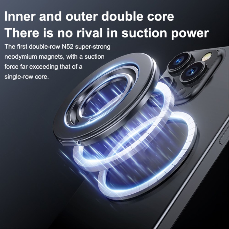 Discover the ultimate MagSafe compatible magnetic phone holder. Smooth 360° rotation, 2-in-1 ring and holder function, multi-angle adjustment for optimum use in portrait or landscape mode. Compact, foldable design.