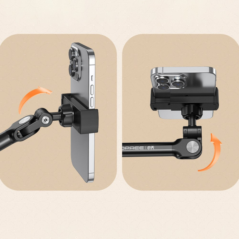 Boneruy's adjustable floor stand is designed to provide optimum height and freedom for shooting. With its telescopic pole that can be extended to around 160 cm, it lets you film, photograph or shoot live events from the perfect angle. Its multi-dimensional 360° swivel offers total flexibility for overhead shots, demonstration videos or streaming sessions. Made from carbon steel with a sturdy PC base, it ensures excellent stability. Compatible with most smartphones from 6 to 9 cm wide, it's ideal for both content creators and everyday users.