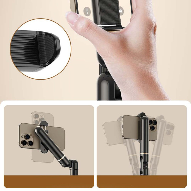 This extendable, rotating phone holder is ideal for streaming, content creation or video conferencing. Its adjustable arm from 53 to 63 cm makes it easy to adjust the height for perfect framing, while the 360° swivel allows you to quickly switch between portrait and landscape modes. Made from carbon steel, aluminium alloy and ABS, it offers excellent stability even when taking aerial shots. Compatible with smartphones from 6 to 8 cm wide, it fits most modern models. Solid and compact, it's a reliable support for everyday use.