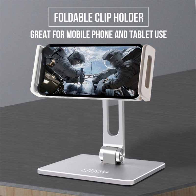 This folding desk stand for phones and tablets offers a versatile and comfortable solution for work, entertainment or video calls. Thanks to its 180° adjustable angle, it allows you to find the ideal position for prolonged fatigue-free use. Made from aluminium alloy, silicone and ABS, it is robust, stable and protects your equipment. Its adjustable opening from 118 to 245 mm fits a wide range of smartphones and tablets. Its foldable format makes it a compact, easy-to-carry accessory, perfect for use in the office, at home or when travelling.