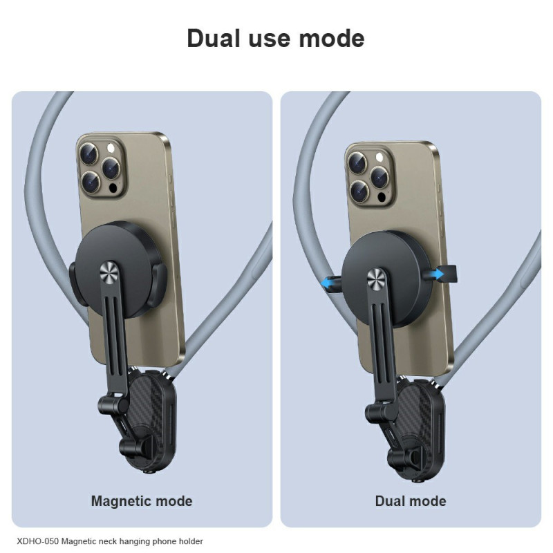 The XUNDD XDHO-050 magnetic neck phone holder offers exceptional comfort for filming, following a tutorial or using your smartphone hands-free. Its powerful magnetic adsorption keeps the phone perfectly stable, even on the move. Its ergonomic design with expanded silicone distributes weight across the neck, reducing pressure and neck fatigue. The integrated anti-shake function limits vibrations for sharper shots. Thanks to its dual mode - normal and magnetic - it's ideal for all kinds of use, whether for vlogging, sport or hands-free consultation.