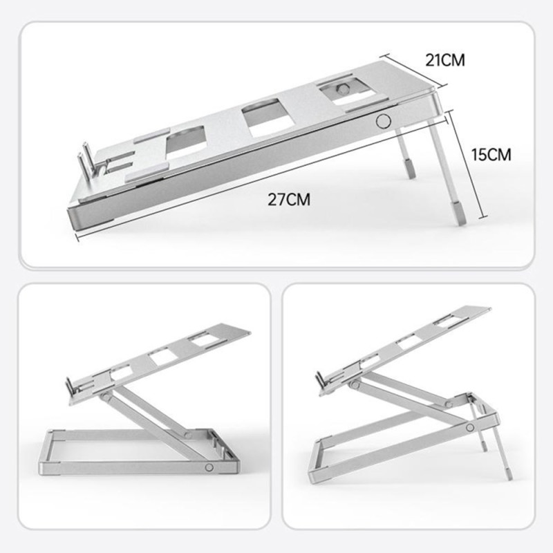 This adjustable mobile stand is designed to enhance your working comfort thanks to its ergonomic elevation and adjustable angle. Made from robust aluminium alloy, it offers excellent stability and a high load capacity without the risk of sagging. Its perforated structure allows air to circulate freely to prevent overheating, even during prolonged use. Lightweight and foldable, it's easy to take home from the office. Ideal for improving posture and reducing tension in the back, neck and arms.