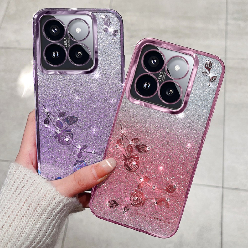 Its sparkling design with floral motif and gradient glitter finish adds a touch of sophistication to your device.