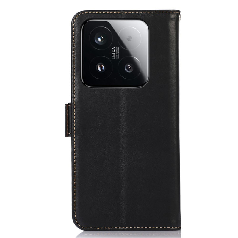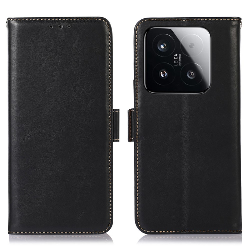 Discover our genuine leather wallet case for the Xiaomi 15T. Combining style and functionality, it offers RFID protection, card slots, an integrated holder and a magnetic closure. Genuine cowhide leather and Crazy Horse texture ensure durability and style, while TPU absorbs shock.