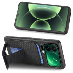 Protect your Xiaomi 17 Pro Max with this premium case featuring an integrated card holder, foldable stand and stylish carbon fibre texture. Compatible with magnetic car mounts for optimum use.
