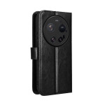 Étui portefeuille élégant en cuir PU texture Crazy Horse pour Xiaomi 17 Ultra. Doté de 3 emplacements pour cartes, 1 compartiment pour espèces, fonction support mains libres et fermeture magnétique sécurisée. Livré avec dragonne pratique.