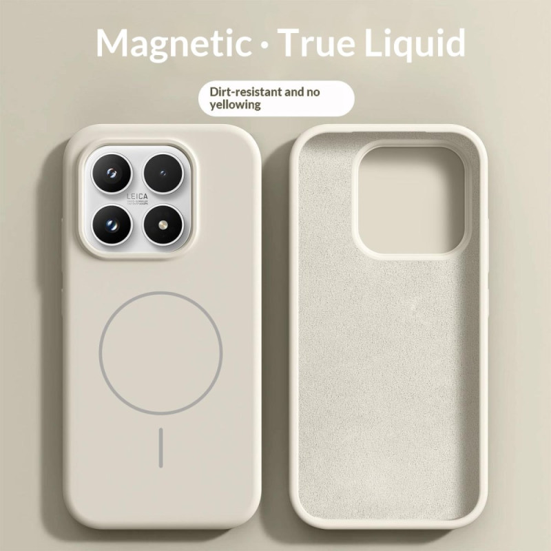 Protect your Xiaomi 17 with this premium magnetic case made from soft-touch liquid silicone. Stylish design with integrated magnetic ring, fingerprint resistance and enhanced drop protection. Optimum comfort and efficient heat dissipation.