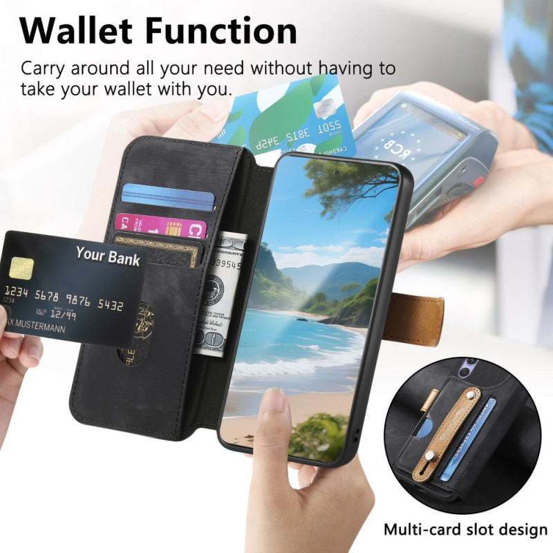Retro wallet case for Xiaomi 17 combining elegance and practicality. With 3 card slots, RFID protection, multifunction wrist strap for support and privacy cover. Sophisticated vintage design...