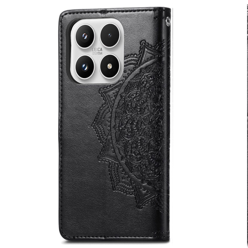 Elegant wallet case for Xiaomi 17 with embossed mandala motif. Includes 3 card slots, 1 ticket pocket, integrated holder and hand strap. Secure magnetic closure. Premium protection in durable PU leather and TPU.