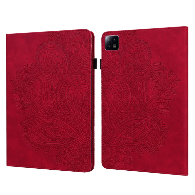 With its embossed floral motif, it combines style and functionality. It has slots for essential cards and an adjustable folding stand for convenient viewing.
