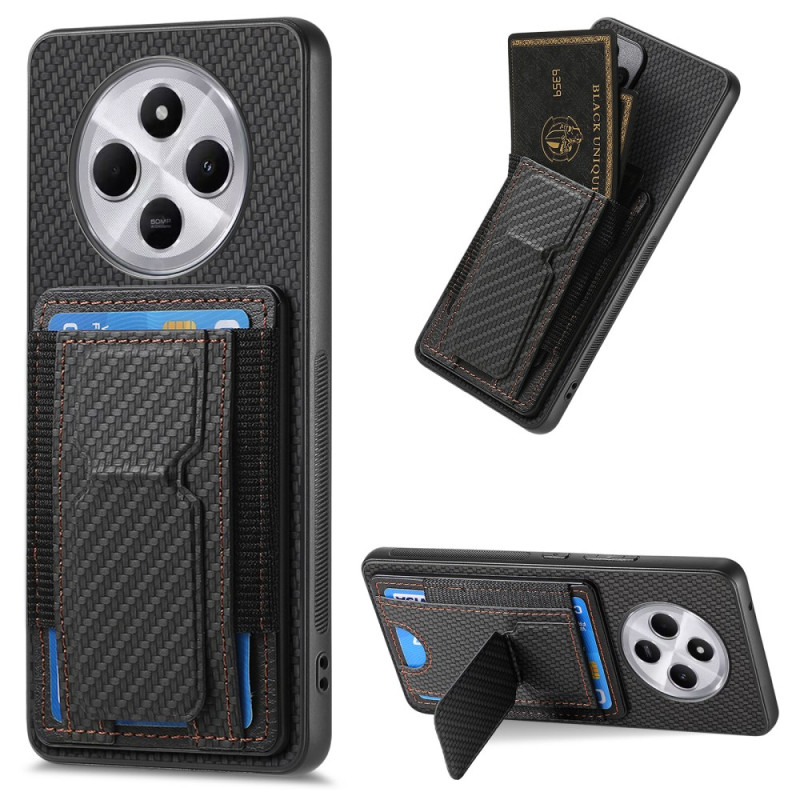 Discover our elegant PU leather case for Xiaomi Redmi 14C / Poco C75 Featuring a sophisticated carbon texture, it offers a practical card holder and an adjustable stand for hands-free viewing.