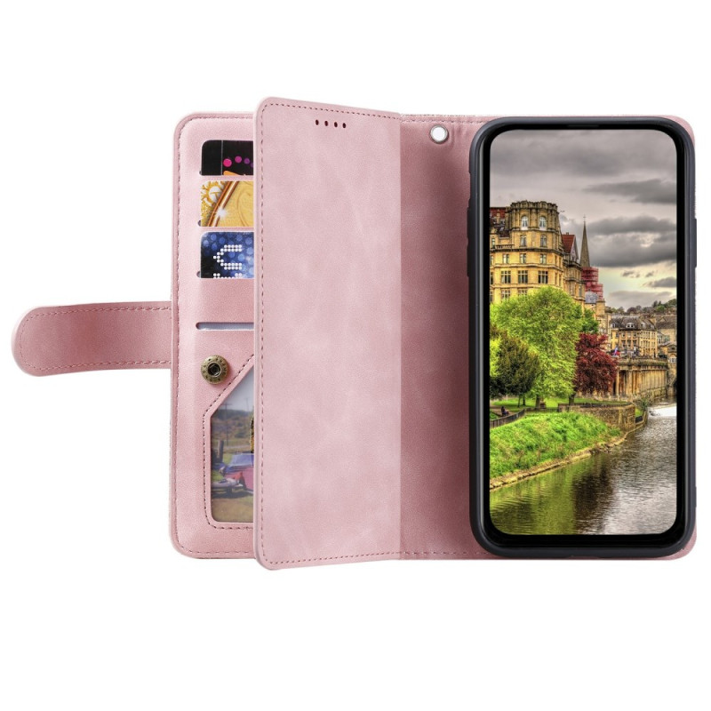 PU leather wallet for Xiaomi Redmi 15 with 9 card slots, zip fastening and hand strap. Integrated stand function for hands-free viewing. Complete protection with magnetic closure and TPU interior. Perfect for safely storing cards, coins and banknotes.