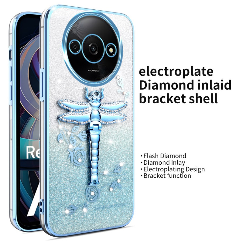 Protect your smartphone in style with this sparkling case adorned with eternal flowers and rhinestones. Its integrated dragonfly holder allows hands-free viewing, while the raised edges effectively protect your camera.