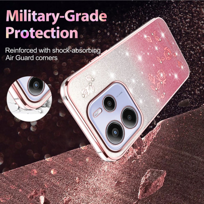 Discover our elegant case for the Xiaomi Redmi Note 14 4G. With its floral design and glittery gradient, it offers a unique and glamorous style.