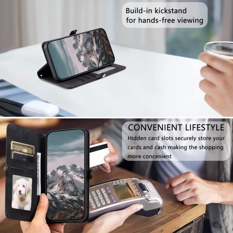 Elegant and functional leather wallet case for Xiaomi Redmi Note 14 5G. Made from high-quality PU leather and TPU, it offers complete protection against scratches and everyday wear and tear.