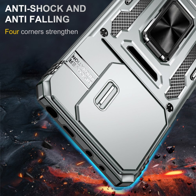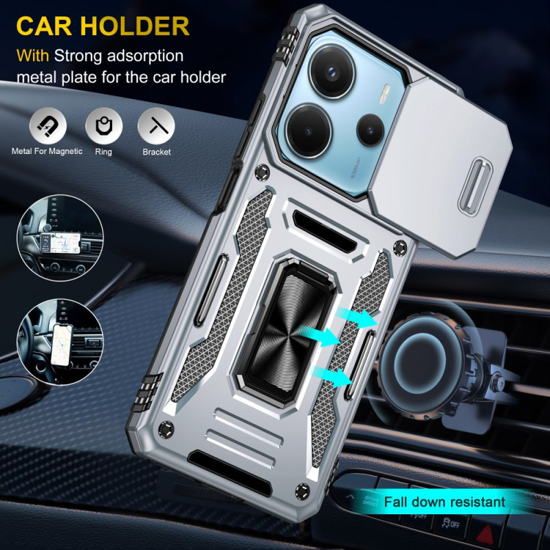 Discover our advanced protective case for the Xiaomi Redmi Note 14. Featuring an adjustable stand, sliding lens protection and a robust PC + TPU design, it offers maximum protection against bumps and drops.