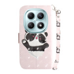 Protect your Xiaomi Redmi Note 15 5G in style with this wallet case featuring a charming panda heart motif. Featuring card slots, a foldable stand and a practical hand strap, it combines style and functionality for everyday use.