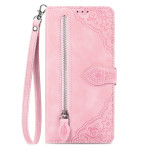 Elegant wallet case in PU leather with floral motif for Xiaomi Redmi Note 15 Pro 4G. Multifunctional design with zip, card holder, integrated stand and practical hand strap for complete protection and refined style.