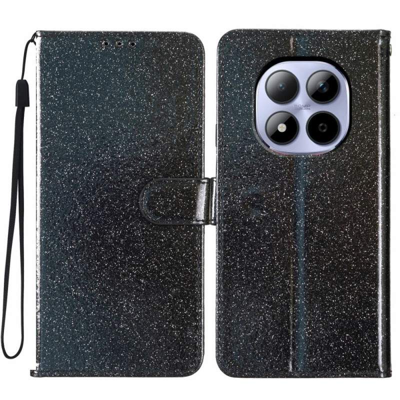 Protect your Xiaomi Redmi Note 15 Pro 5G in style with this glittery wallet case. Made from premium PU leather with impact-resistant TPU, it features card slots, an adjustable hands-free holder and a handy wrist strap.