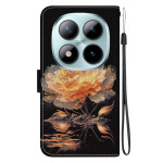 Protect your Xiaomi Redmi Note 15 Pro Plus 5G in style with this elegant wallet case with flap. Adorned with a golden peony motif, it offers drop protection, card slots and a practical hand strap for secure transport.