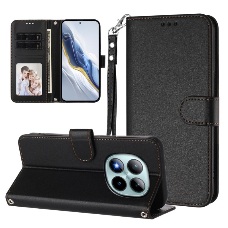Stylish and functional wallet case for Xiaomi Redmi Note 15 Pro Plus 5G. Combines premium protection, practical storage with 3 card slots, hands-free function and secure wrist strap. Wireless charging compatible for optimal everyday use.